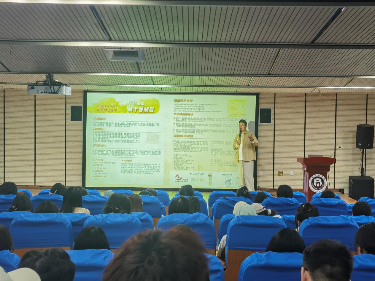 为深化产教融合,推动校企协同育人,提升广告学专业学生的商业短视频创作能力与品牌策略思维,9月25日,全国高校短视频联盟秘书长姚政委率品牌策略组负责人王光耀、新媒体拍摄组负责人秦立杰等专家团队走进我校图书馆报告厅,面向广告学专业大二、大三学生开展题为“商业短视频全流程制作与品牌策略创意实践”的专题讲座。本次活动聚焦全国短视频联盟秋季赛事,旨在助力学生提升实战能力与创意思维,拓展校企合作新路径。