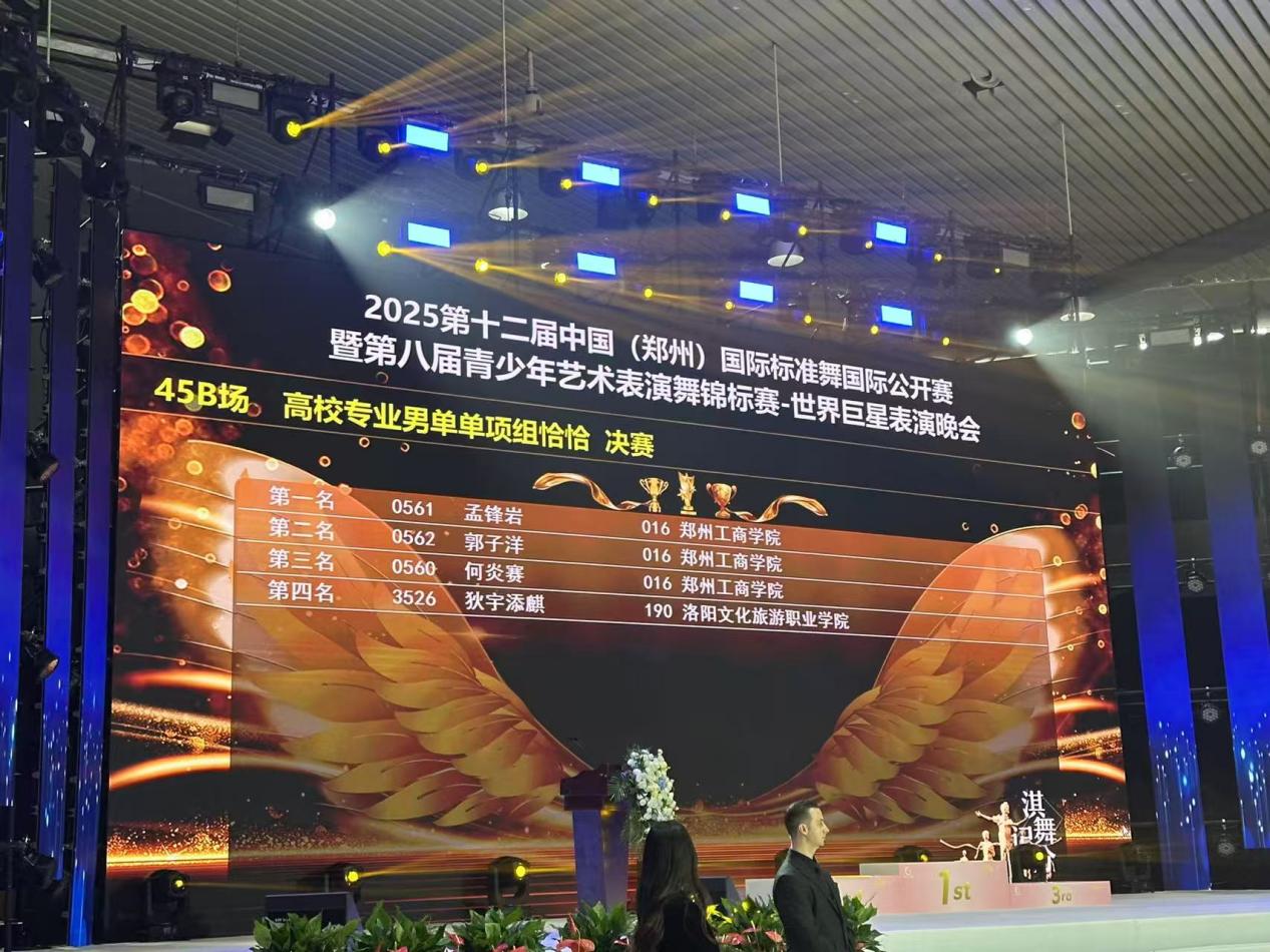 2025年10月1日至2日,该专业学子兵分两路,同时参加了由河南省体育总会主办、河南省体育舞蹈运动协会承办的“2025河南省体育舞蹈公开赛”以及由河南省艺术舞蹈协会主办的“2025第十二届中国(郑州)国际标准舞国际公开赛暨第八届青少年艺术表演舞锦标赛”。在两场强手如云、竞争激烈的比赛中,同学们沉着应战,发挥出色。经过激烈的角逐,舞蹈表演(国际标准舞)专业学子凭借优雅的舞姿、默契的配合和饱满的艺术表现力,在两大赛事中累计斩获28项大奖。其中,荣获第一名共计11项,第二名4项,其余奖项13项。