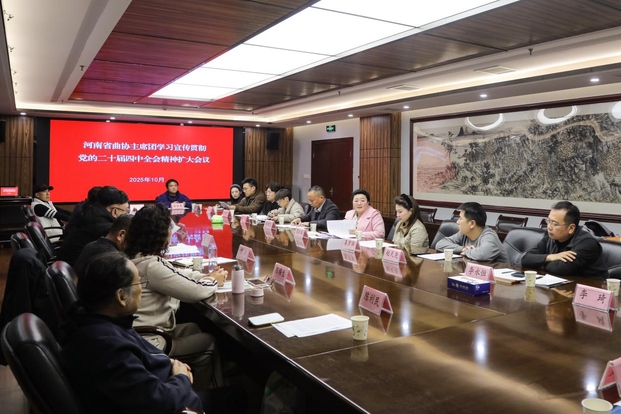 2025年10月28日,河南省曲艺家协会主席团扩大会议在郑州召开,我校艺术学院院长雷红薇教授、音乐表演系主任任增吉、骨干教师黄帅、黄小芳一行四人受邀参会,与省曲协主席团成员、理事以及来自高等院校、新文艺群体、新媒体等领域的20余位代表共同学习宣传贯彻党的二十届四中全会精神。