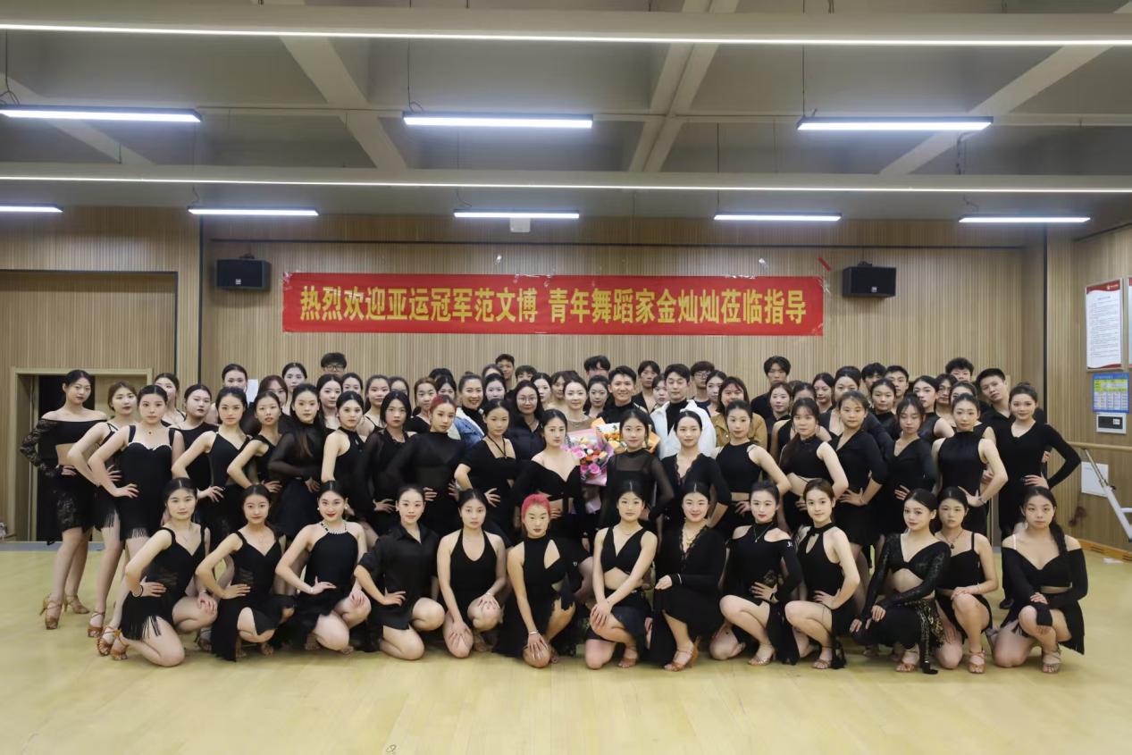 11月4日,艺术学院举办“解读舞蹈表演专升本技术考试要诀”专题讲座,特邀亚运会拉丁舞冠军范文博与青年舞蹈家金灿灿联袂主讲。舞蹈表演系主任张金金、专业骨干教师侯雅昕、王鑫及舞蹈表演(国际标准舞)专业2023、2024级全体学生共同参与。