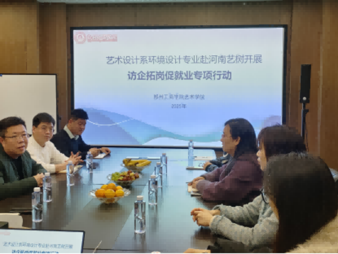 为深化产教融合,拓宽毕业生就业渠道,2025年11月7日,我院环境设计专业负责人李莉老师带领师生代表赴河南艺树文化创意有限公司,开展“访企拓岗促就业”专项交流活动。河南艺树文化创意有限公司艺术总监陈晓清携核心团队热情接待,双方围绕人才培养、实习实训等议题展开深入探讨。