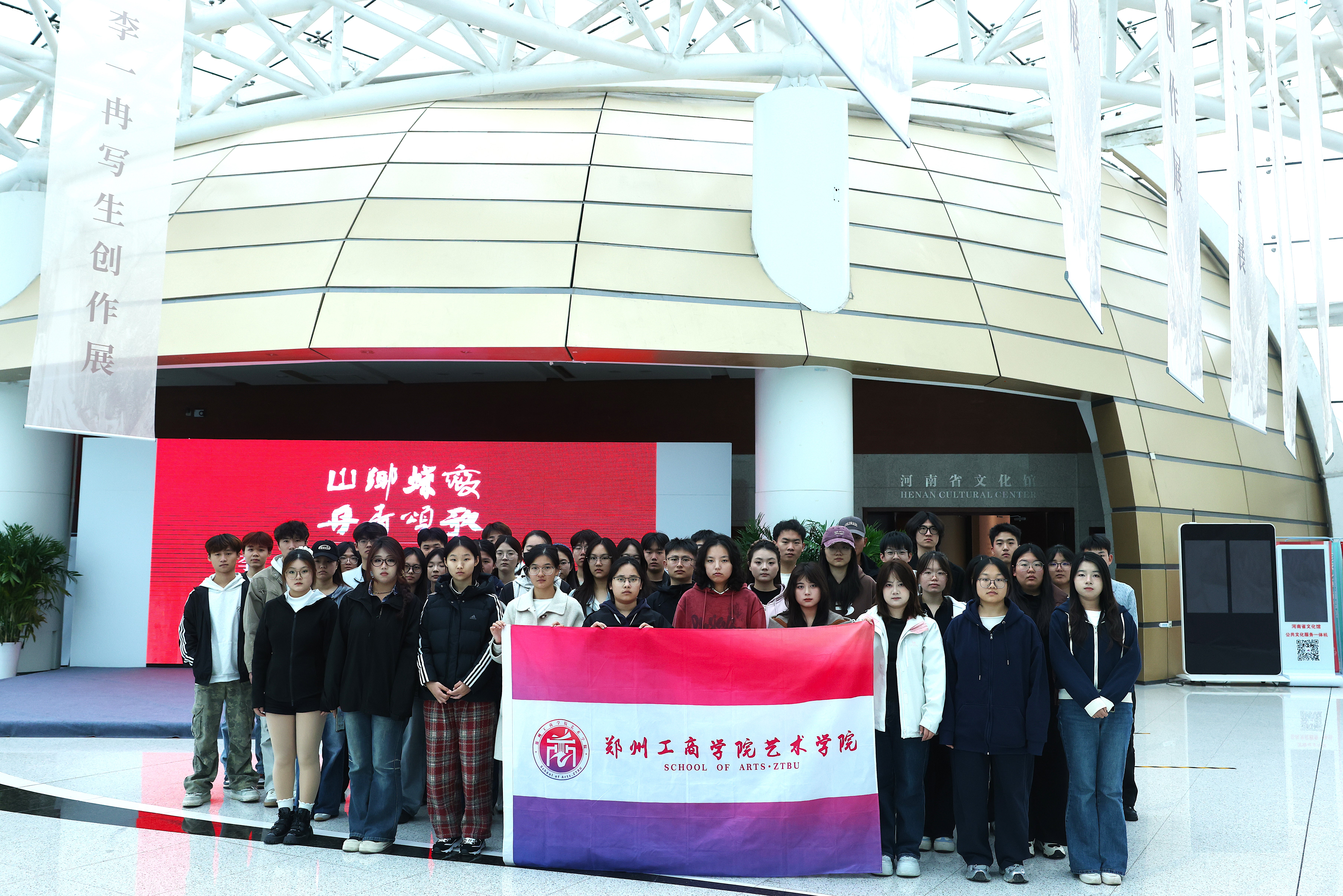 为深入贯彻艺术设计教育扎根时代土壤、服务社会文化的育人理念,进一步深化专业课程的实践内涵,艺术学院艺术设计系与公共艺术教学部组织师生于2025年11月13日,赴河南省文化馆开展了一场以“文化馆里的设计课”为主题的深度交流与研学活动,旨在通过实景教学拓展美育边界,构筑协同育人新场景。