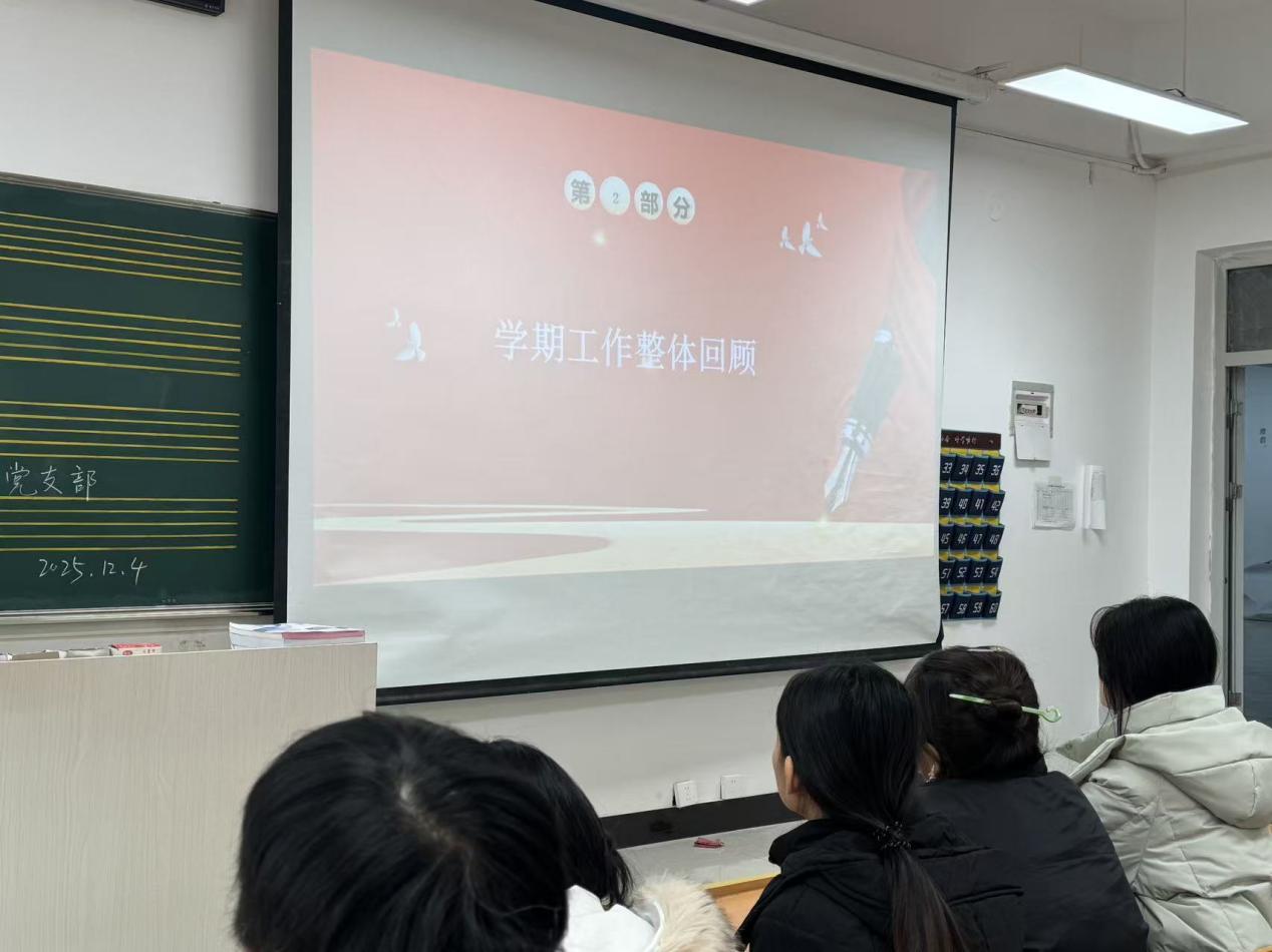 2025年12月4日,艺术学院学生第九党支部在三号教学楼206教室开展主题党日活动,对学期工作进行全面总结,全体支部成员参加。