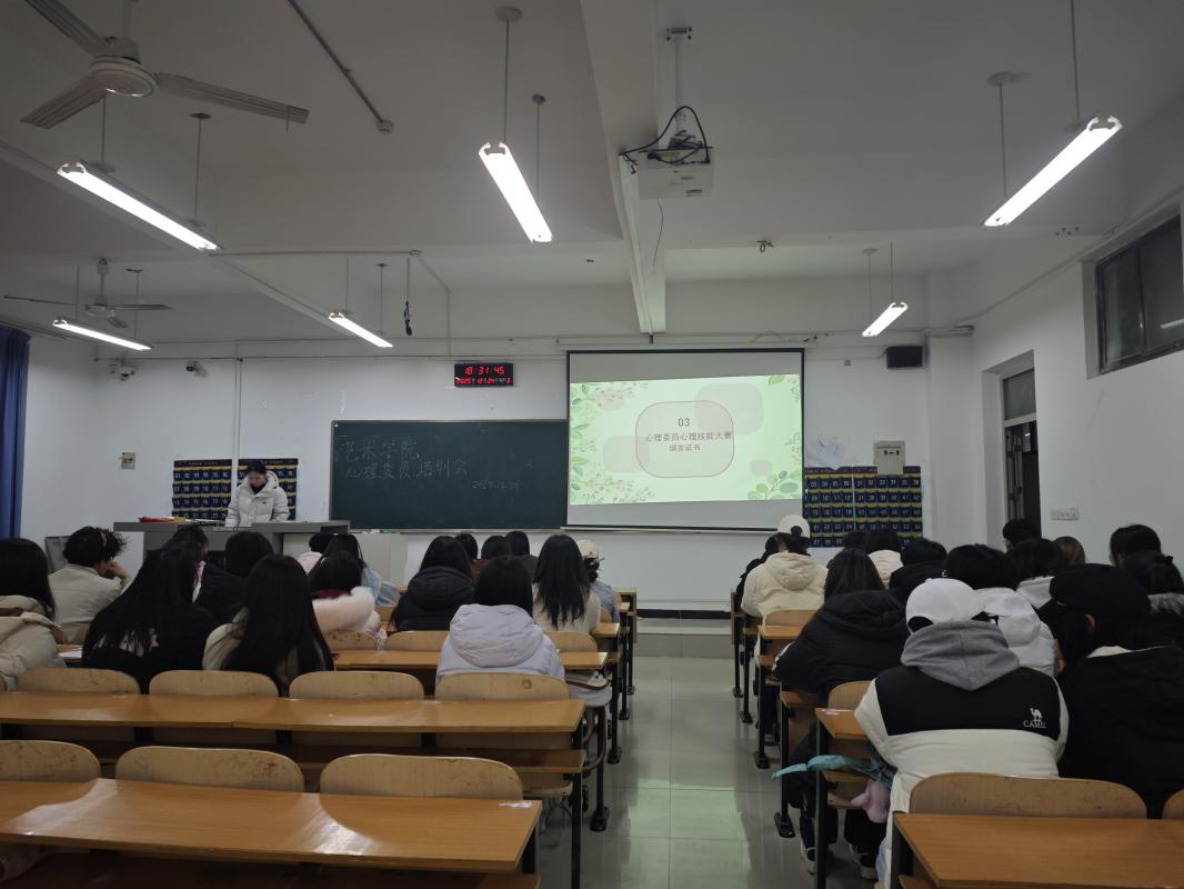 为夯实班级心理健康防线,总结本学期工作成效,明确期末工作重点,我校艺术学院身心健康部组织开展期末心理委员培训会,全体心理委员参与其中,心理健康工作部门相关负责人及干事出席指导。