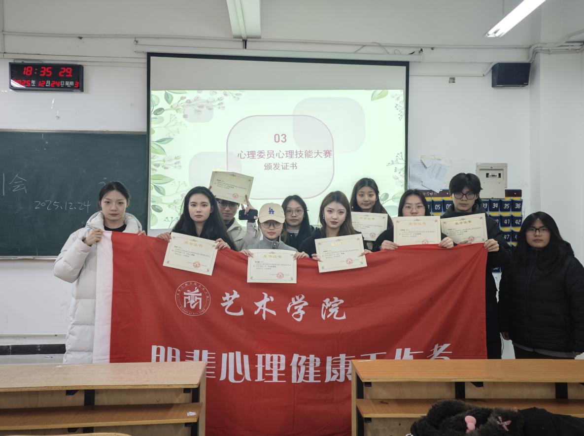 现场还为在心理委员技能大赛中获奖的同学进行表彰,获奖代表展现的专业素养为全体成员树立标杆。培训最后,部门负责人寄语大家站好期末最后一班岗,密切关注同学心理状态,遇问题及时反馈。