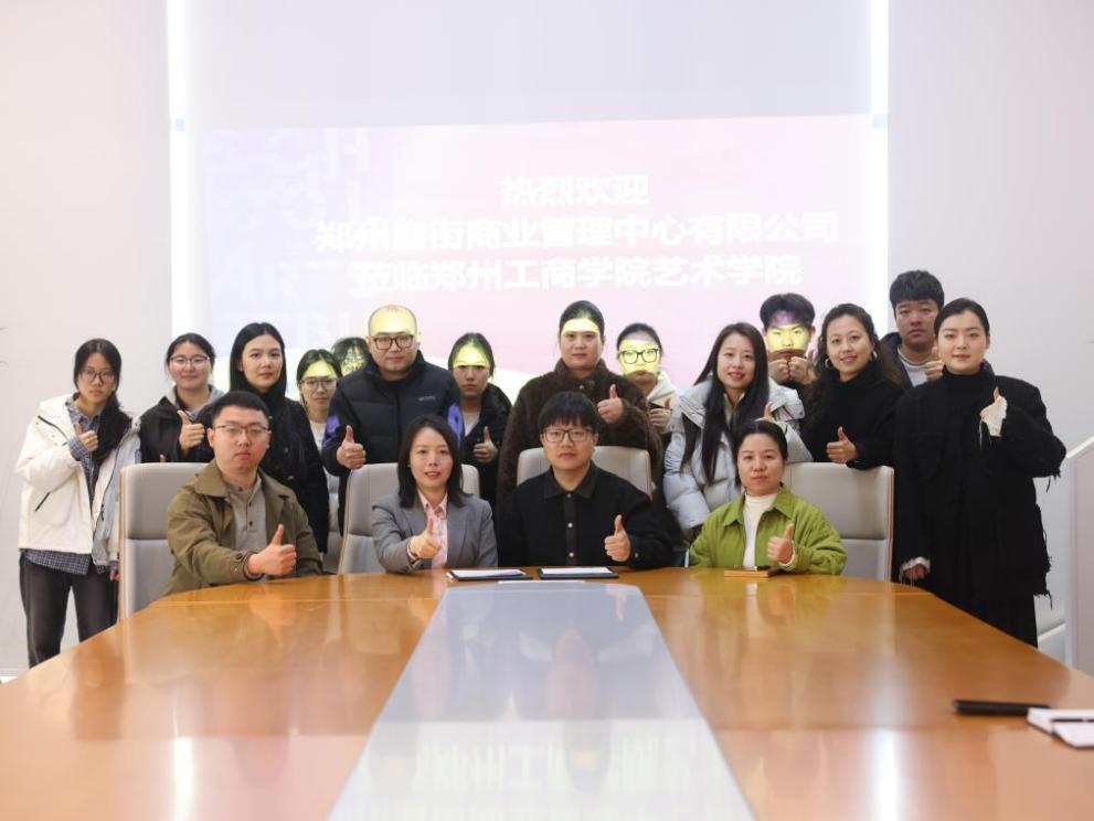 为进一步深化产教融合、拓展学生实践平台,2026年3月13日,我院与磨街文创园正式签订校企合作协议。学院副院长王鹏、艺术设计系主任张彩虹及师生代表,郑州磨街商业管理中心有限公司总经理刘敏菊、人力资源部经理喻一鸣、企划部经理李亚坤一行出席签约仪式。