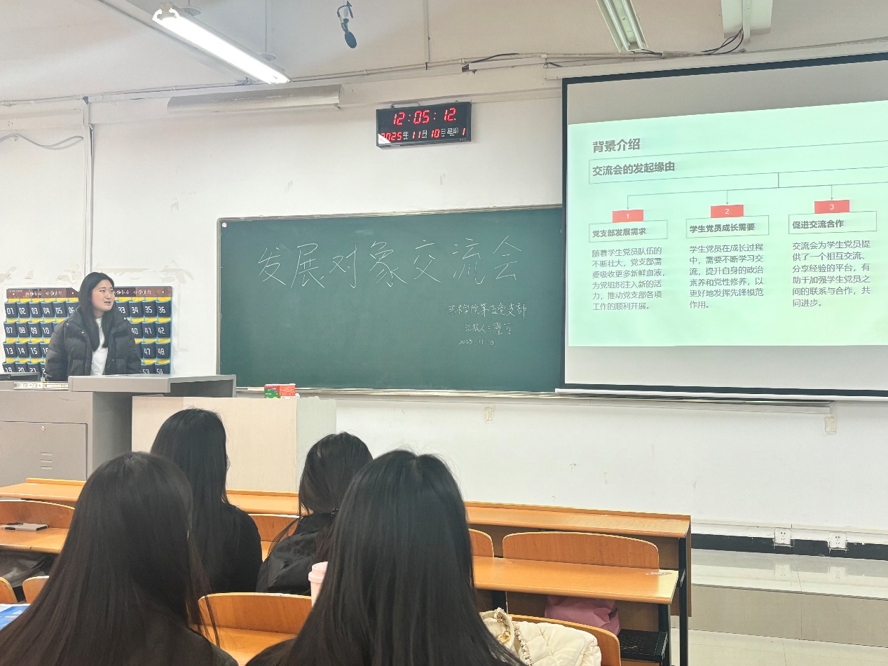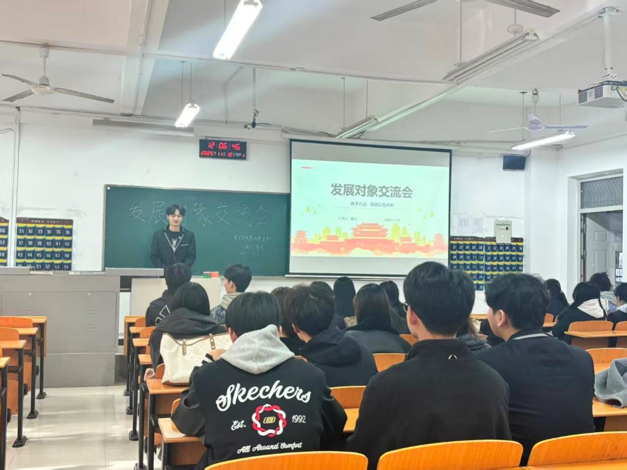 为严格规范党员发展程序,精准掌握入党发展对象的思想动态、学业表现与实践情况,切实提升党员发展质量,2025年11月10日中午12:00,艺术学院学生第五党支部于三号楼205教室召开以“发展对象交流会”为主题的支委会。艺术学院学生第五党支部负责人主持带领党支部成员,围绕发展对象的经验分享展开学习与交流,结合学生身份探讨青年使命的实践路径。