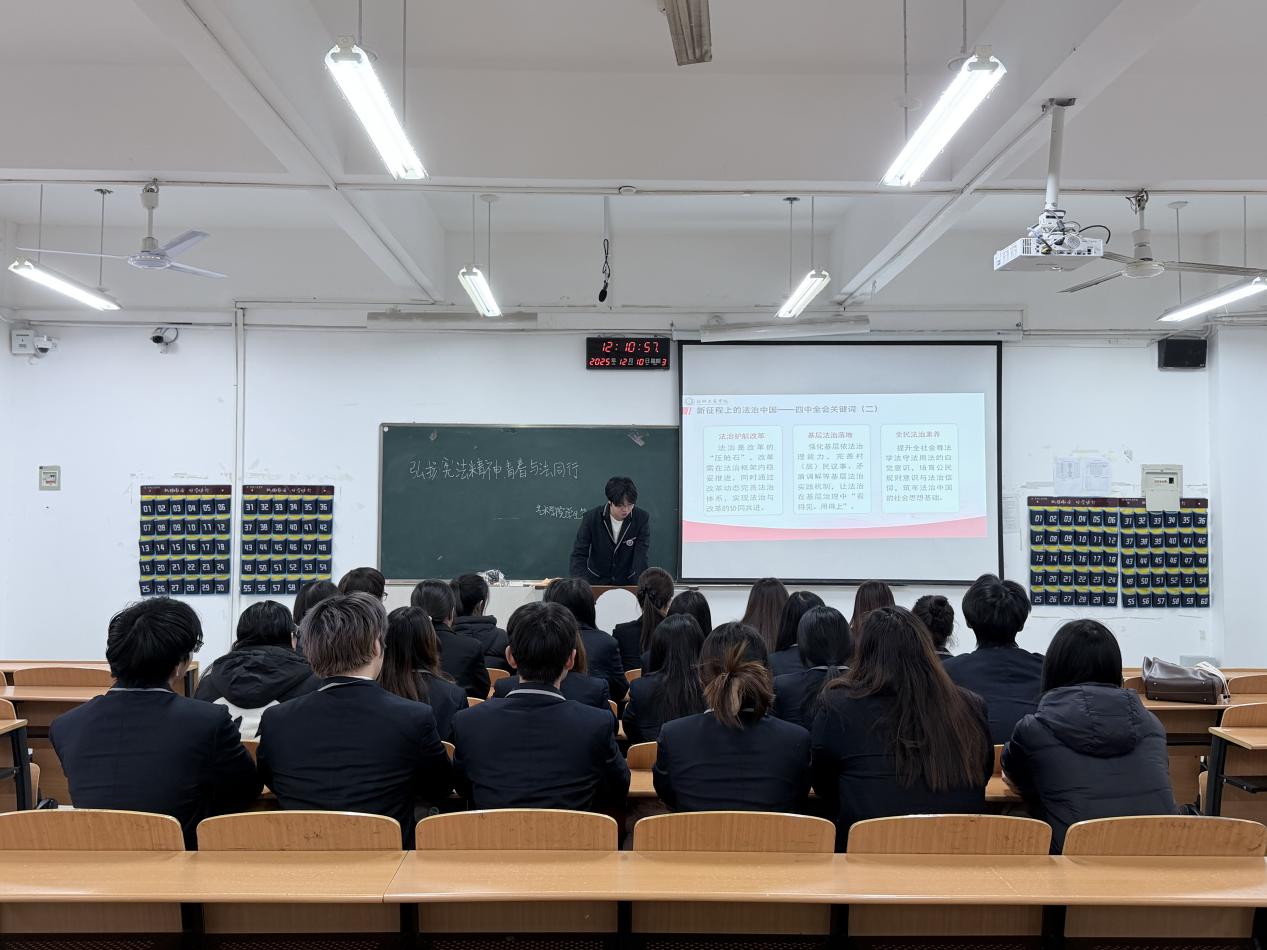 为深入学习贯彻习近平法治思想,切实筑牢支部成员的法治信仰根基,2025年12月10日,艺术学院学生第一党支部在西校区3号楼209教室组织开展了“尊崇宪法权威,践行法治精神”主题党日活动,支部全体成员参加。