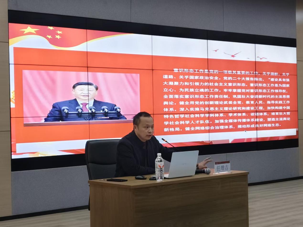 为持续巩固新时代意识形态工作学习成果,进一步筑牢青年学生思想根基,12月11日中午12:30,艺术学院党总支于实验三区报告厅301室成功举办新时代意识形态工作培训课第三讲,本次培训聚焦新时代意识形态工作,由艺术学院教工第一党支部书记任增吉担任主讲。