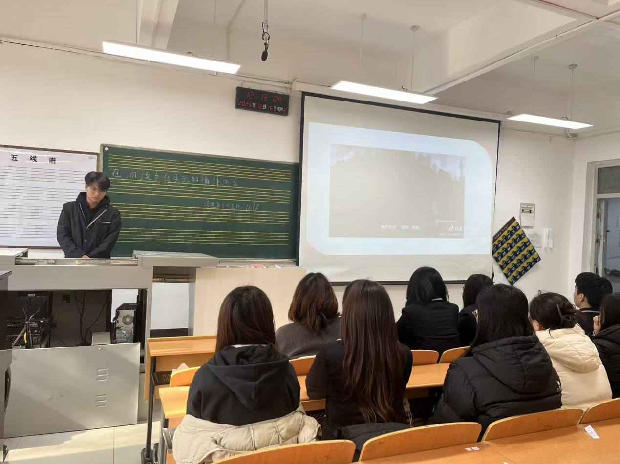 为不断加强爱国主义教育,传承红色基因,让支部成员们深入了解优秀榜样的事迹和精神,明确自身努力方向,2025年12月16日,艺术学院学生第三党支部在3号楼206教室开展“在诵读中传承党的精神谱系”主题党日活动。