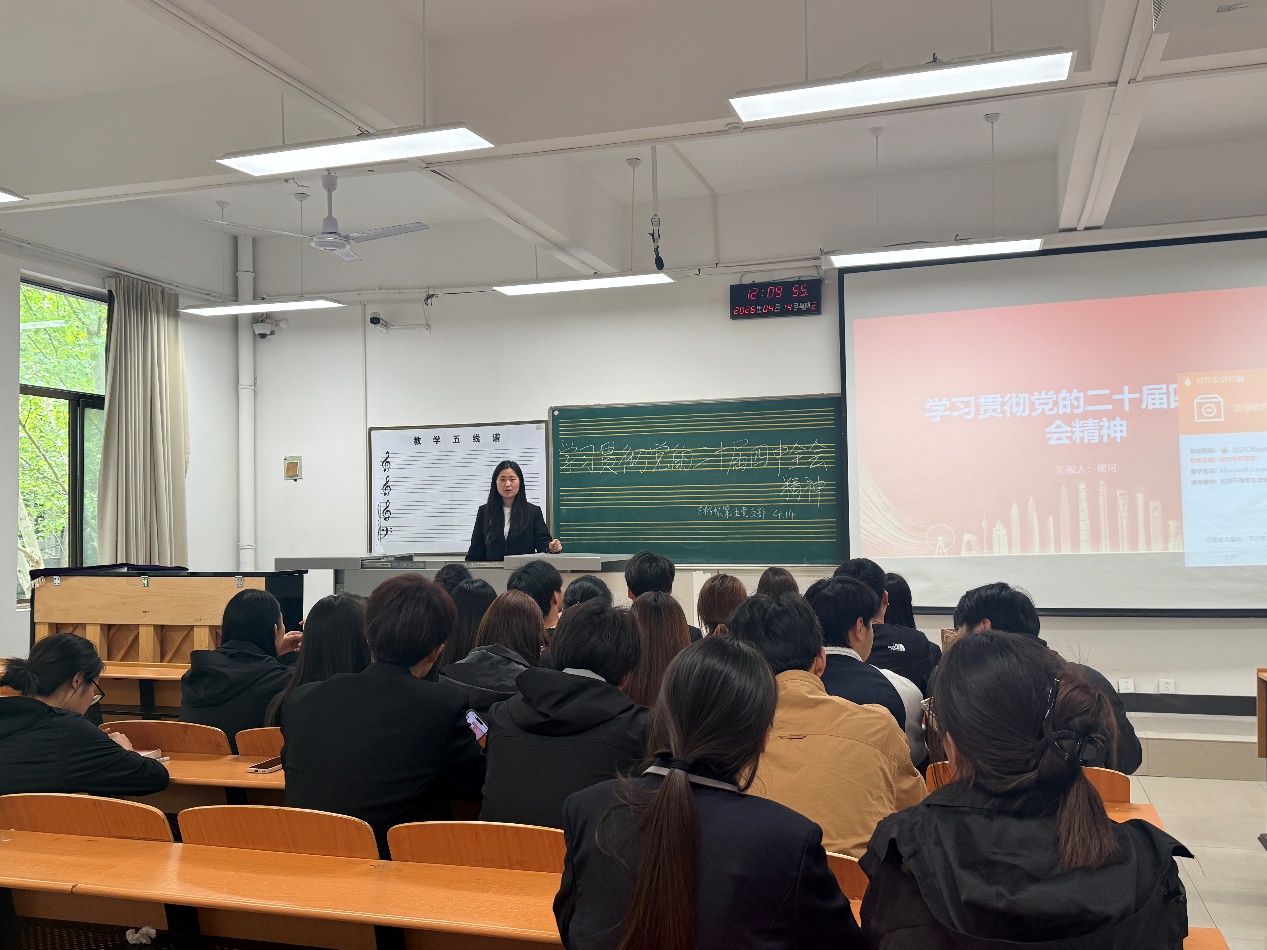 为严格落实党内政治生活制度,引导参会成员深学细悟党的二十届四中全会精神。2026年4月14日中午12:00,艺术学院学生第五党支部在西校区三号楼204教室组织开展“学习贯彻党的二十届四中全会精神”主题党日活动。本次活动由艺术学院学生第五党支部支部负责人主持,党支部全体成员参加。