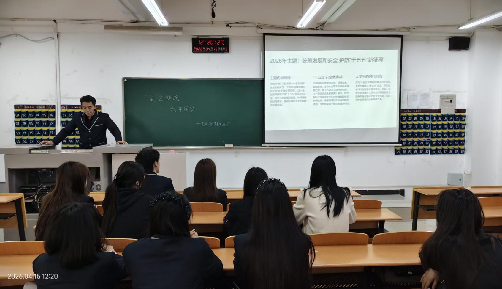 为深入学习贯彻总体国家安全观,引导参会成员以艺术实践筑牢国家安全思想防线,4月15日,艺术学院学生第十党支部在三号教学楼205教室组织开展“‘剧’艺铸魂,共守国安”主题党日活动。
