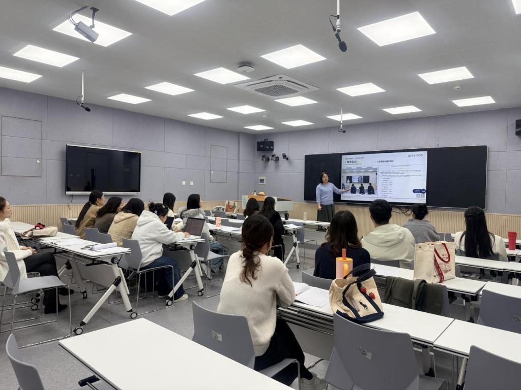 为夯实青年教师教学基础,提升青年教师育人育才能力,推动艺术类教学质量提质增效,4月21日,艺术学院于智慧教室335开展“以赛为引 精进教学——教学技能提升分享”专题培训,特邀刘兵老师担任主讲人。此次培训以教学技能大赛为切入点,围绕“开篇破题、备课实战、以赛促教”三大模块,聚焦青年教师教学实践与赛事备赛需求,通过理论讲解、案例拆解、实操指导相结合的方式,为青年教师搭建学习交流与本领锤炼平台,助力青年教师提升教学能力与育人素养。