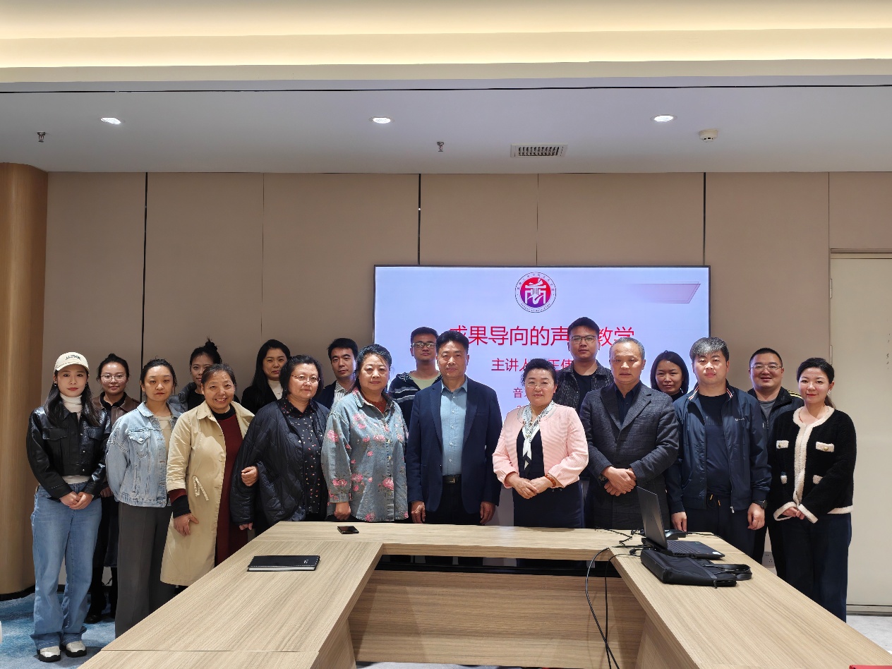 为进一步做好2026版人才培养方案修订工作,深化声乐教学改革,创新教学理念,提升专业教学质量与人才培养水平,4月21日,我院音乐表演系特邀黄淮学院音乐学院院长(公共艺术教学部主任),信阳师范大学硕士生导师,驻马店市音乐家协会主席王伟平教授,开展《成果导向的声乐教学——OBE理念下的教学实践与思考》专题学术讲座。全系教师齐聚一堂,共同聆听这场兼具理论深度与实践指导意义的学术分享,讲座现场学习氛围浓厚。
